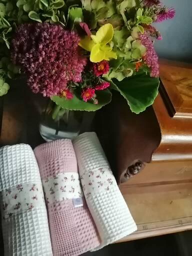 Útěrky jsou vyrobené ze 100% bavlny vaflové vazby, která vyniká vysokou savostí.